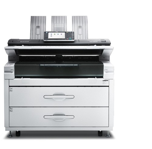 Déplacez l'information, pas l'équipement de bureau. Utilisez l'empreinte compacte du MP W7100/MP W8140 pour imprimer, copier et numériser des documents grand format, peu importe la taille de votre bureau.